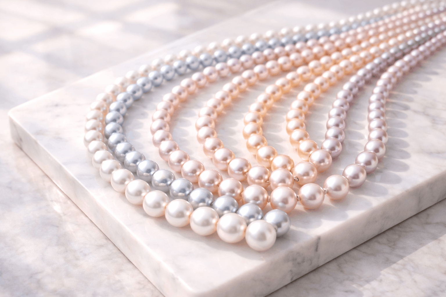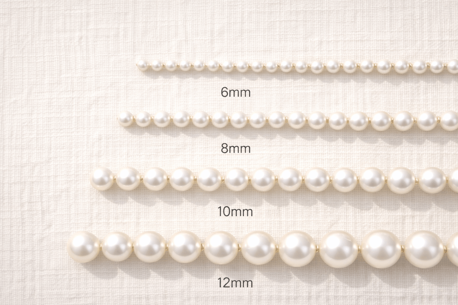 Sötvattenpärlor täcker ett liknande intervall men sträcker sig längre i den övre änden. Tack vare framsteg i odlingsteknik och bead-nucleated Edison-pärlor når sötvattenstorlekar nu 15 mm och över. Så om du vill ha större statement-pärlor utan Sydhavspriser är sötvatten ärligt talat ditt bästa val just nu. Intervallet 7,5–10 mm är mest populärt för sötvattenhalsband och set och ger utmärkt visuell effekt till överkomliga priser.