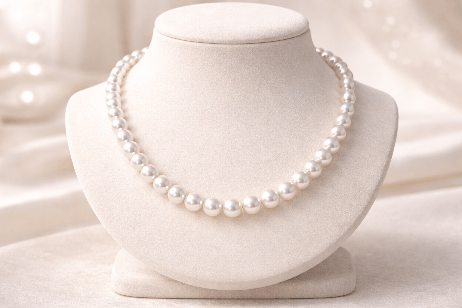 På samma sätt levererar PearlsOnly utmärkt till mycket skarp lyster. Pärlemorsskikt också 2,0–4,0 mm – samma standarder. Yta 90 % ren för Akoya och sötvattenspärlor pålitligt. 80–85 % för exotiska – fortfarande utmärkt. Utmärkt matchning genom hela halsbandet. Kvalitet som konkurrerar med Mikimoto till lägre pris. Exceptionellt värde som prioriterar synlig kvalitet framför varumärkesprestige.