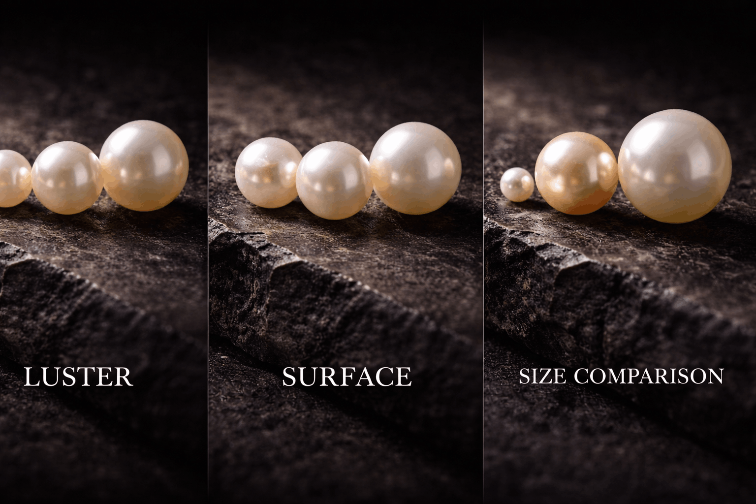 Ytfel påverkar direkt hur mycket pärlor är värda. Rena ytor med minimala fläckar, bulor eller ojämnheter kostar betydligt mer än kraftigt defekta pärlor. Perfekt rena pärlor är supersällsynta. De flesta har åtminstone små defekter om du tittar nära. Det är faktiskt normalt och okej för mellanprisklass-pärlor.
