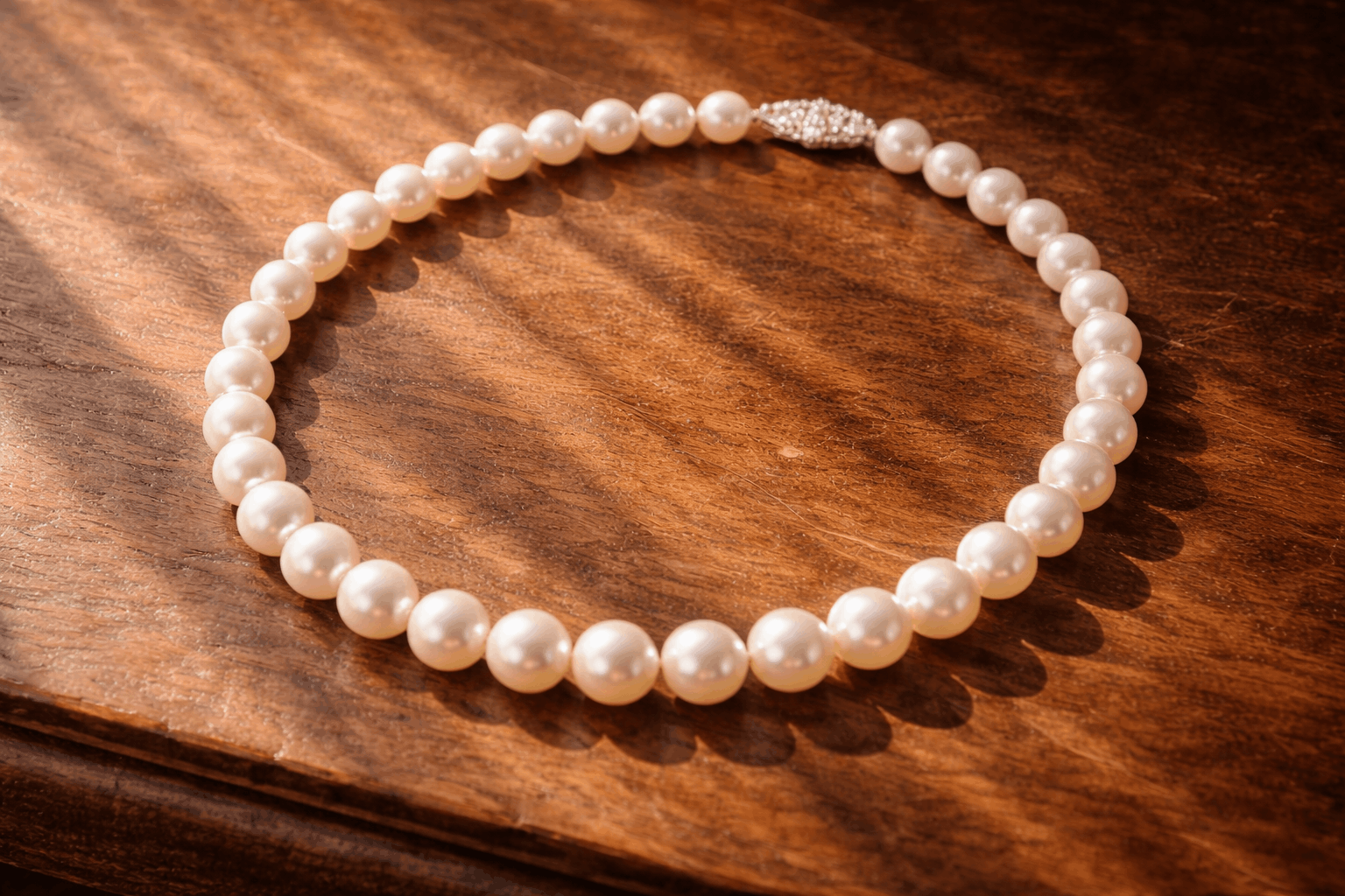 När man förstår bildningsprocessen blir det förvånansvärt enkelt att upptäcka förfalskningar. Den snabbaste kontrollen är tandtestet – gnugga försiktigt pärlan mot kanten på dina framtänder. Äkta pärlor känns lätt sträva på grund av de kristallina pärlemorslagren. Glas, plast eller belagda imitationer känns däremot helt släta varje gång. Utöver det bär äkta pärlor alltid små naturliga variationer i ytans struktur och form, även i en vackert matchad kedja. Onaturlig perfekt enhetlighet över varje pärla är därför nästan alltid en röd flagga. Vikten hjälper också – äkta pärlor känns märkbart tyngre i handen på ett sätt som plastkopior helt enkelt aldrig lyckas efterlikna.